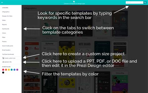 Prezi Template Library - Free presentation templates for students, teachers, and nonprofits. These favorite prezis are also a great place to find prezi templates to reuse. Prezi design offers hundreds of templates, including infographics, reports, dashboards, posters, social media posts, and more that you can customize and repurpose as you like. Use this free prezi template for introducing your plans and projects. Library presentation.